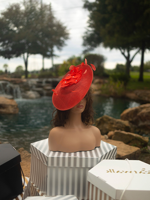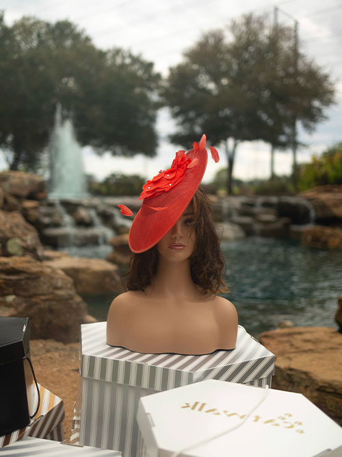 ELLA is a sculptural hat, a so-called “hatinator”. Not so big like a hat but a little more than a fascinator.