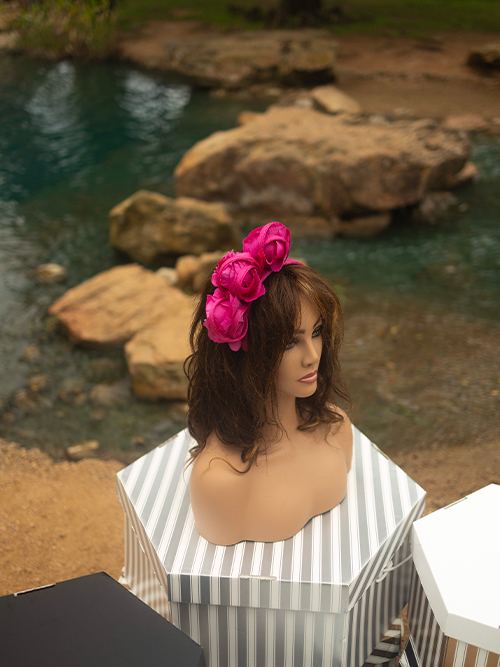 ELLA is a sculptural hat, a so-called “hatinator”. Not so big like a hat but a little more than a fascinator.